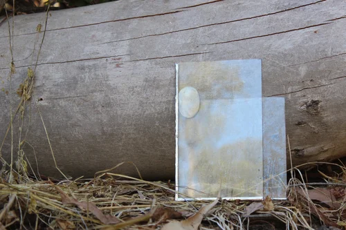 2019. Organza, cyanotype, ceramic, resin, gold leaf